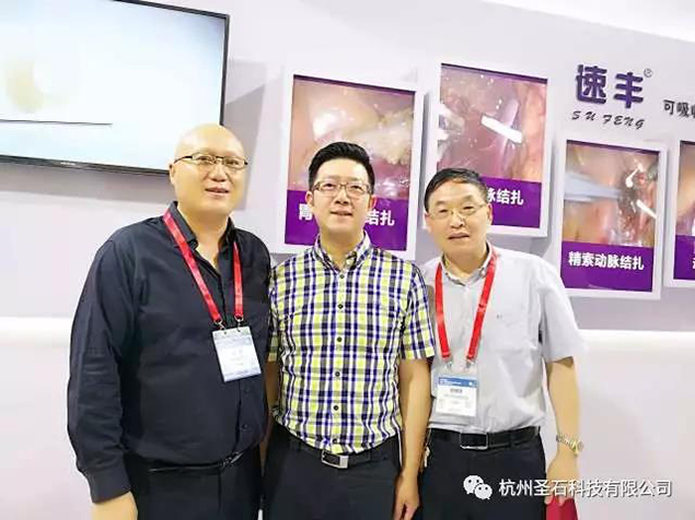 河南省醫(yī)學(xué)會微創(chuàng)外科分會新老主任委員河南省人民醫(yī)院微創(chuàng)中心主任張超教授及武警河南總隊醫(yī)院普外科主任趙國強(qiáng)教授也特意到訪我司展臺,與我司石磊董事長合影,表達(dá)對代表國貨優(yōu)質(zhì)產(chǎn)品速豐?的認(rèn)可與支持。
